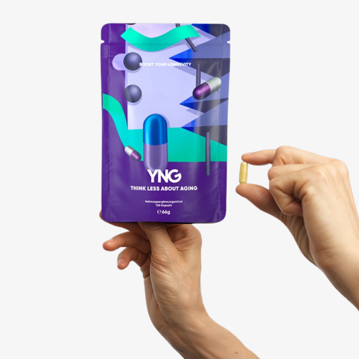 Für eine optimale Verarbeitung der Nährstoffe im Körper empfiehlt YNG, die Nahrungsergänzungsmittel täglich zu den Mahlzeiten einzunehmen. So stellst Du sicher, dass die Wirkstoffe bestmöglich aufgenommen werden und Deine Zellen kontinuierlich mit den notwendigen Nährstoffen versorgt werden.