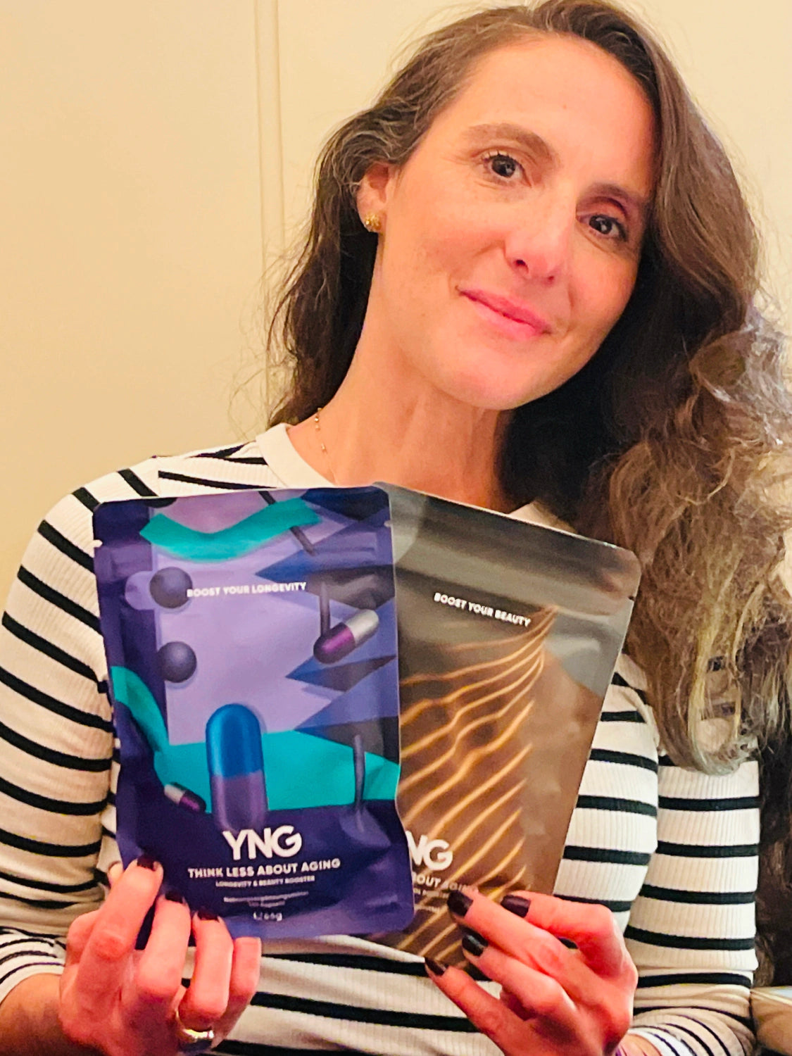 “YNG ist seit 9 Wochen fester Bestandteil meiner täglichen Morgenroutine. Als passionierte, ‚always on-the-run, Mum von zwei Kids und PR Agent im Bereich Fashion, Design & Longevity sind die hochwertigen Supplements die perfekte ‚all-in-one’ Lösung für meinen daily Energy- und Glow Boost.”